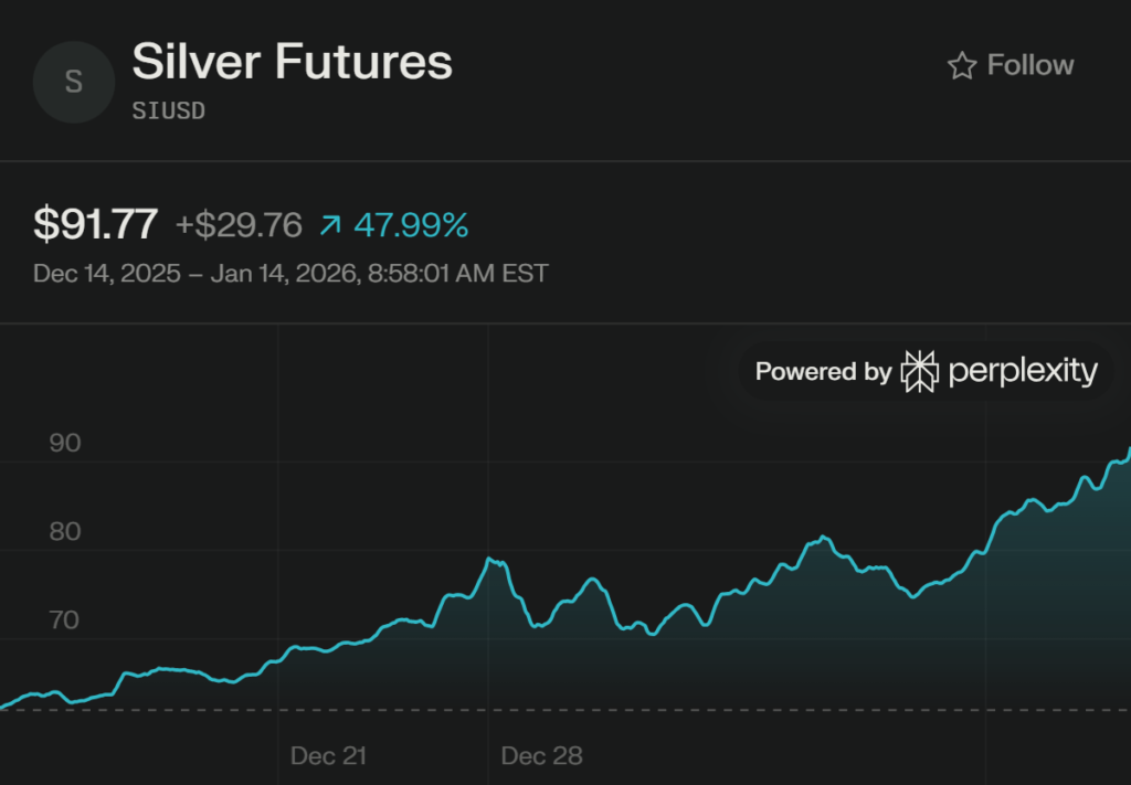 While both metals are at record highs, silver’s performance has clearly outpaced gold in the opening stretch of 2026.